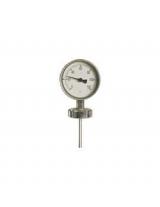 These are essentially Bi-metallic thermometers, Bi-metal element is enclosed in a hollow metallic stem with close fitting. As the temperature rises Bi-metal element expands and activate3s a pointer fixed on the dial to read temperature